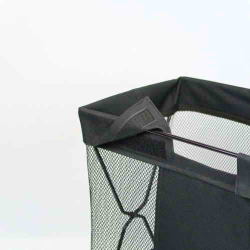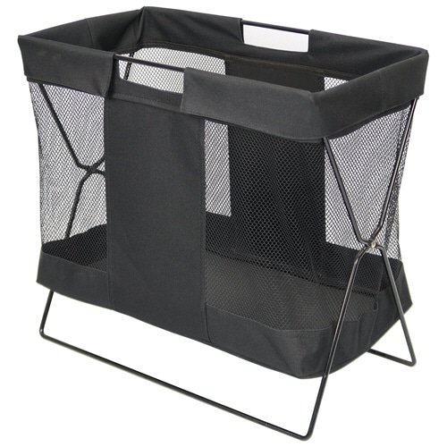 折りたためてコンパクトに収納できるメッシュバスケット。飲食店などでの手荷物入れにおすすめです。