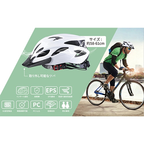 | 商品仕様 | ●重量/約250g ●色/ホワイト ●材質/PCシェル、高密度EPSフォーム ●その他仕様/●適用頭囲:約58~61cm ●適合規格:SG規格 ●生産国:中国 |