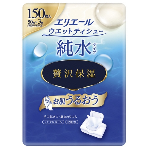 大王製紙 エリエール ウエットティシュー 純水タイプ 贅沢保湿 つめかえ用 1パック(150枚:50枚×3個)
