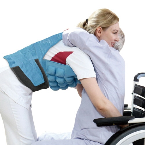 エアークッションで介助時のストレスを軽減してくれます。ウエストベルトで腰の負担も軽減!