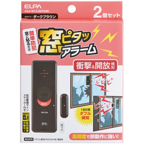 ELPA 窓ピタッアラーム 衝撃+開放検知式(ダブル検知タイプ) ダークブラウン ASA-W13-N2P(DB) 1ケース(2個)