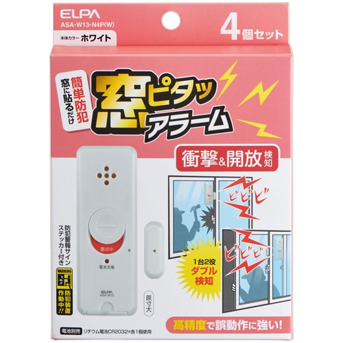ELPA 窓ピタッアラーム 衝撃+開放検知式(ダブル検知タイプ) ホワイト ASA-W13-N4P(W) 1ケース(4個)