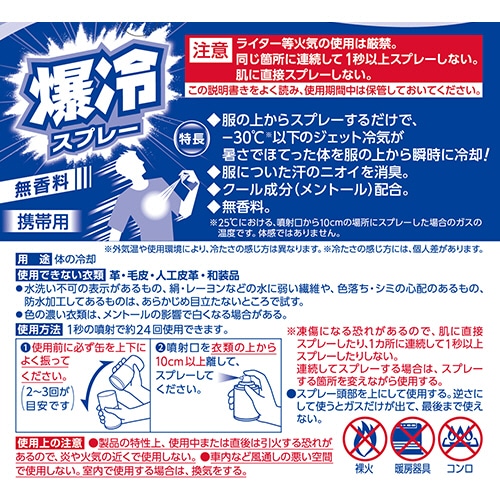 ●服の上からスプレーするだけで、-30℃(※)以下のジェット冷気が暑さでほてった体を瞬時に冷却!
