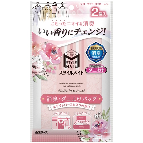 白元アース スタイルメイト 消臭・ダニよけバッグ ホワイトローズムスクの香り 1パック(2個)