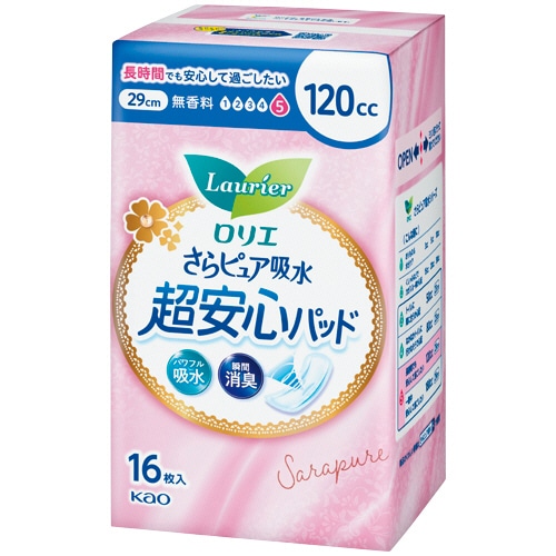 花王 ロリエ さらピュア吸水超安心パッド 120cc 1パック(16枚)