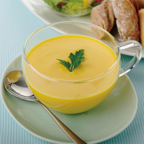 ●冷やしておいしい!大人むけの冷たいスイートコーンポタージュです。