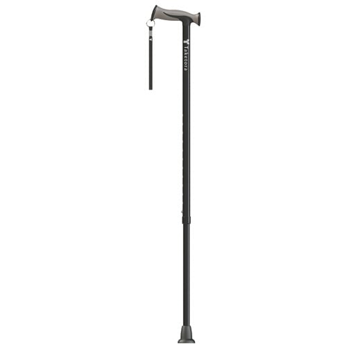 ●手にフィットするグリップ形状。手に沿った形状で握りやすいブラックのステッキ。