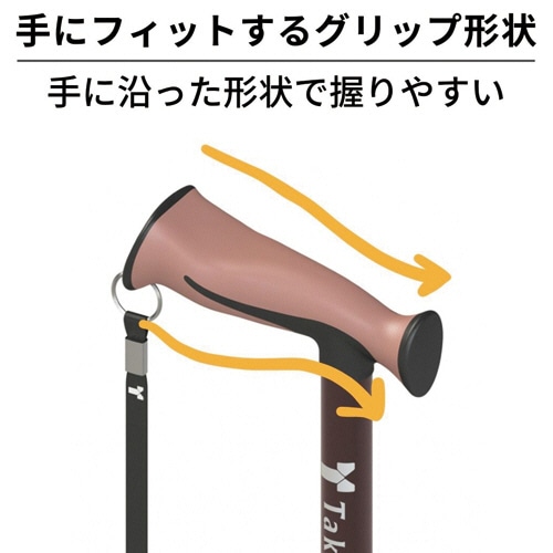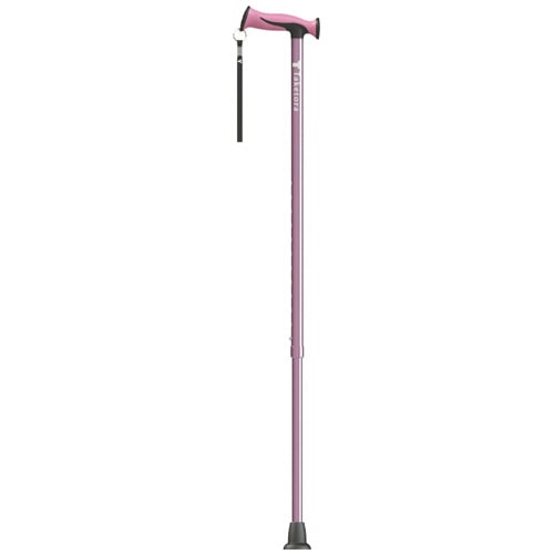 ●手にフィットするグリップ形状。手に沿った形状で握りやすいピンクのステッキ。