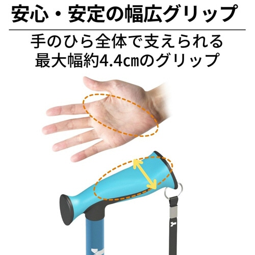 ●地面をしっかり捉える杖先ゴム。幅広の底面で安定感抜群!
