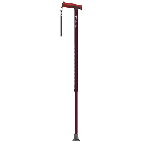 ●手にフィットするグリップ形状。手に沿った形状で握りやすいワインレッドのステッキ。