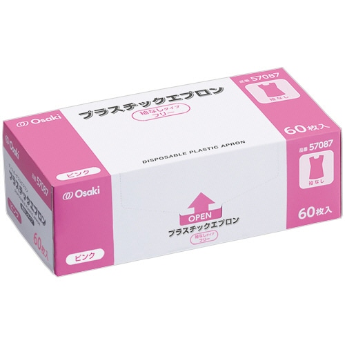 オオサキメディカル オオサキ プラスチックエプロン 袖なし ピンク 57087 1箱(60枚)