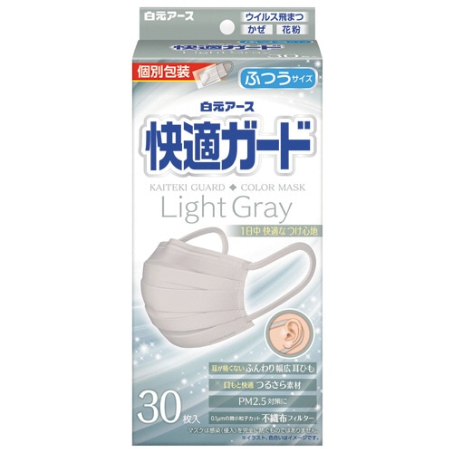 白元アース 快適ガードマスク ふつう ライトグレー 個包装 1箱(30枚)