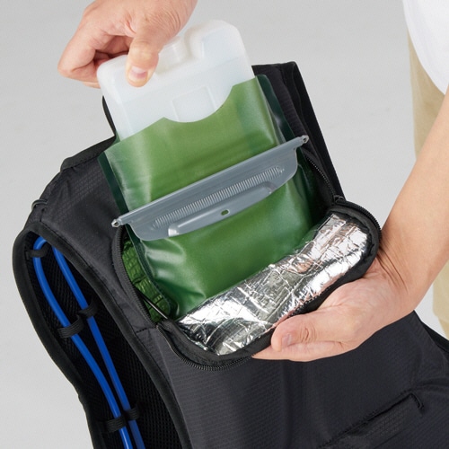 | 商品仕様 | ●サイズ/フリー(S~5L相当) ●色/ブラック ●材質/ナイロン・ポリエステル・TPU・シリコンゴム ●その他仕様/●適応胸囲:80~130cm ●運転モード:(1)連続運転(2)ミドル運転(3)ロング運転 ●連続運転時間:最大24時間(3350mAhモバイルバッテリー使用時) ●付属品:専用保冷パック ●備考/※モバイルバッテリーは付属しておりません。 |