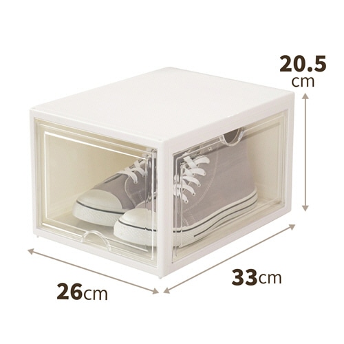 ●側面も透明になっているので、横置きして見せる収納にも好適です。お気に入りのコレクションシューズを鑑賞できます。
