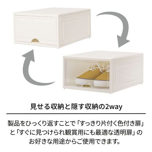●製品をひっくり返すことで「すっきり片付く色付き扉」と「すぐに見つけられ観賞用にも好適な透明扉」のお好きな用途からご使用できます。
