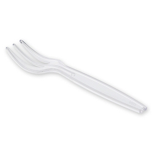 ●裸で100本袋詰めタイプ。90mm・透明のフォーク。