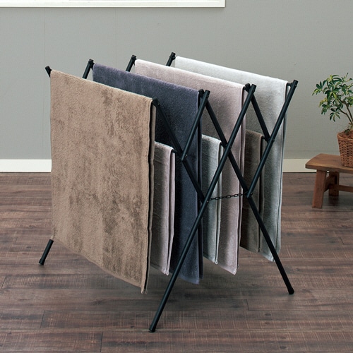 ●バスタオル4枚、フェイスタオル3枚が干せるタオルスタンド。
