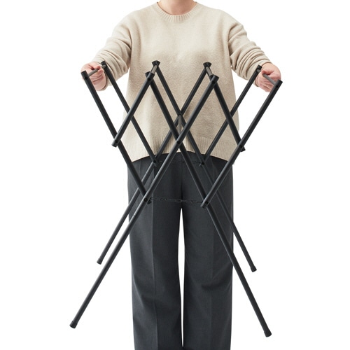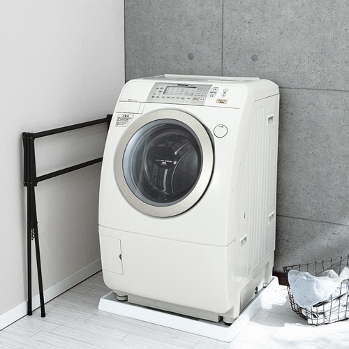 商品仕様 | ●寸法/W700×D560×H720mm ●干す量の目安/バスタオル4枚、フェイスタオル3枚 ●重量/1.32kg ●耐荷重/7kg ●色/ブラック ●材質/本体:スチールパイプ粉体塗装、樹脂部品:ポリプロピレン、金属部品:スチール(メッキ) ●その他仕様/●タオルスタンド |