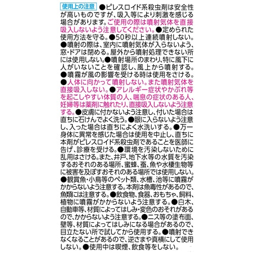 ●速効殺虫成分「フタルスリン」と持続殺虫成分「ビフェントリン」の働きで、優れた殺虫&予防効果(※)を発揮します。(※薬剤処理面への接触による駆除および忌避による効果。)