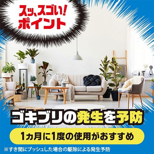 ●ゴキブリの発生を予防(※)。1ヵ月に1度の使用がおすすめです。(※すき間にプッシュした場合の駆除による発生予防)