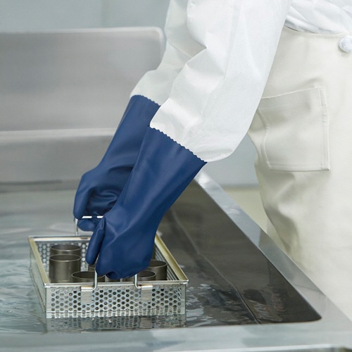●油・酸性・アルカリ性の薬品の透過を防ぎ、経皮吸収のリスクから作業者を保護。