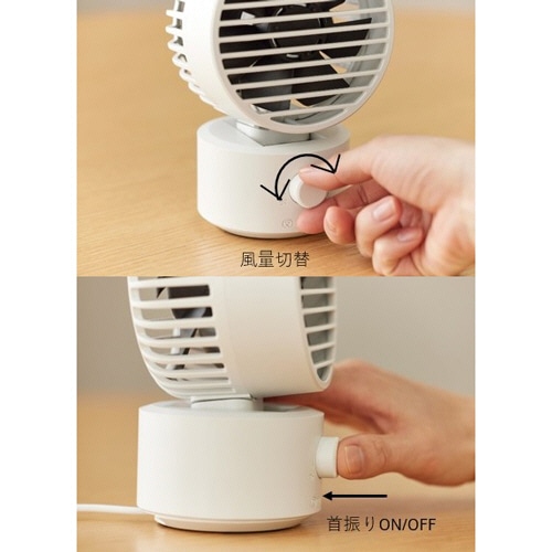 | 商品仕様 | ●風量調節/2段階(強・弱) ●羽根/あり ●羽根径/前約86.5、後約82mm ●首振り機能/左右約70°(自動) ●風向調節角度/上下調節:約30°(手動) ●電源ケーブル長さ/約90cm(USB) ●消費電力/3.5W(DC5.0V時) ●寸法/W106×D90×H161mm ●重量/約290g ●色/ライトグレー ●その他仕様/●デスクトップタイプ ●保証期間/1年 |