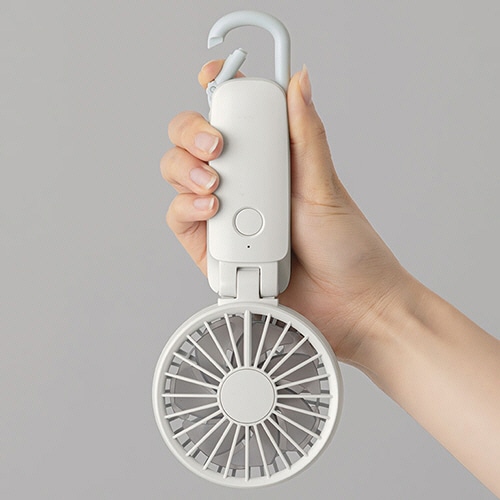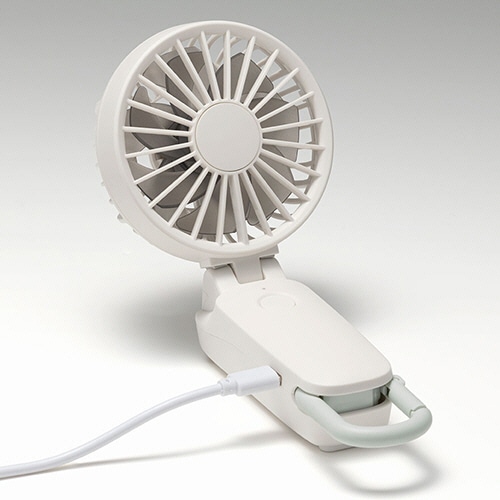 | 商品仕様 | ●風量調節/4段階(弱・中・強・ターボ) ●羽根/あり ●羽根径/前約65、後約70mm ●風向調節角度/上下調節:約110度(手動) ●電源ケーブル長さ/約30cm(USB) ●消費電力/2W(DC5.0V時) ●寸法/W85×D40×H214mm ●重量/約150g ●色/ライトグレー ●その他仕様/●ハンディタイプ ●カラビナ付 ●保証期間/1年 |