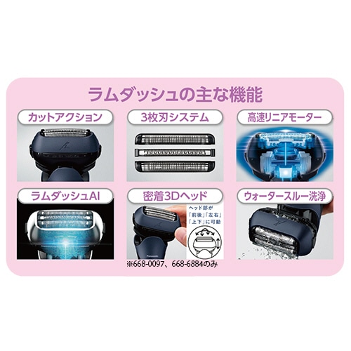 | 商品仕様 | ●刃数/3枚 ●駆動方式/リニアモーター ●洗浄方法/ウォータースルー洗浄 ●色/茶 ●充電時間/急速60分 ●使用時間/フル充電し1日1回約3分間の使用で約14日間使用可能 ●電源/AC100~240V(自動電圧切替付) ●電源方式/充電交流式 ●寸法/W64×D50×H155mm ●質量/145g ●材質/本体:ABS、刃:ステンレス刃物鋼3枚刃(深剃り刃×2、トリマー×1) ●その他仕様/●機能:カットアクション、3枚刃システム、高速リニアモーター、ラムダッシュAI、ウォータースルー洗浄 ●保証期間/1年 ●備考/※お風呂やシャワー室など、水にぬれる環境で使用しないでください。 |