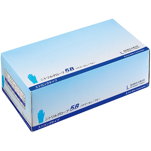 ファーストレイト ニトリルグローブ5B パウダーフリー ブルー L FR-6593 1箱(150枚)