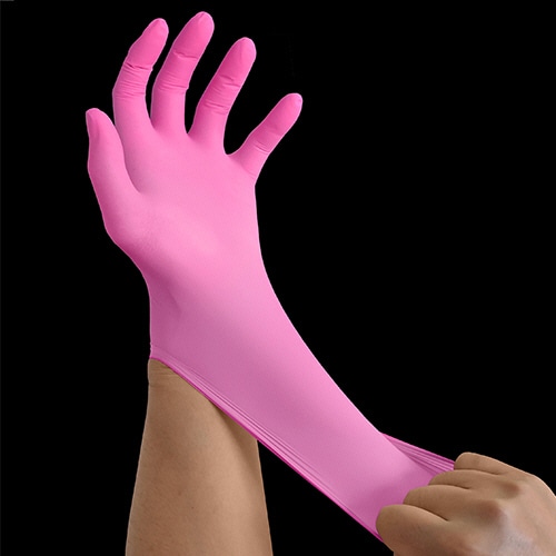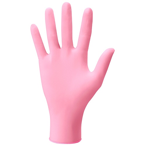 【食品衛生法適合】ピンクカラーで作業性と強度のバランスに優れた汎用性の高いタイプの使い捨てニトリルゴム手袋(パウダーフリー)