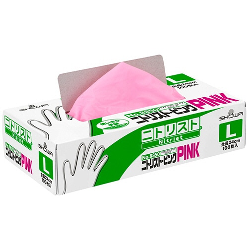 ショーワグローブ No.8850 ニトリスト・ピンク パウダーフリー L #8850-L 1箱(100枚)