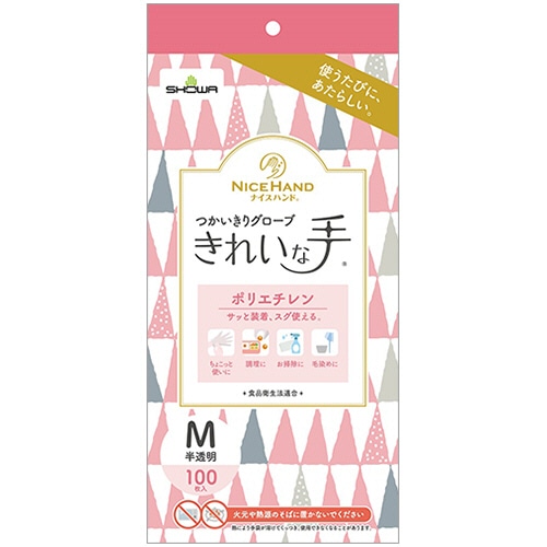 ショーワグローブ ナイスハンド きれいな手 つかいきりグローブ ポリエチレン M 半透明 NHKTTGPE-M100P 1箱(100枚)