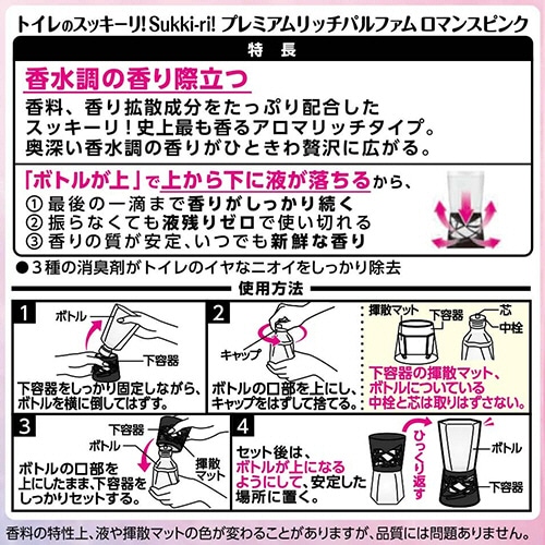 ●香料、香り拡散成分をたっぷり配合したスッキーリ!アロマリッチタイプ。高級な香水をイメージした、気分がうっとりするような、愛らしいピンクフローラルバニラの香りです。