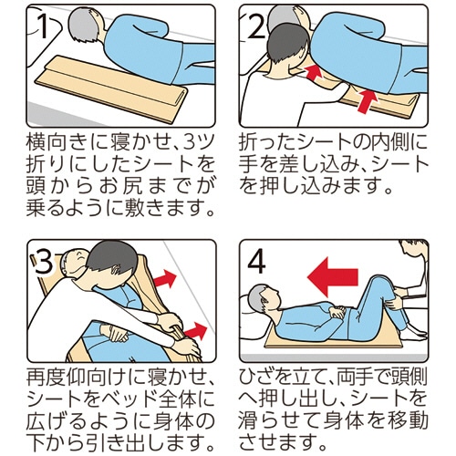 ●体の下に敷いて、ベッドや寝具の上での移動、体位変換、移乗に使います。