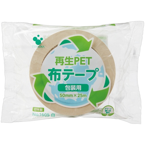 寺岡製作所 再生PETカラー布テープ 50mm×25m 厚み約0.18mm 白 1605 1巻