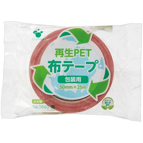 寺岡製作所 再生PETカラー布テープ 50mm×25m 厚み約0.18mm 赤 1605 1巻