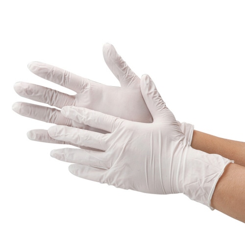 ●粉なし(パウダーフリー)加工の為、パウダーによる手荒れのリスクを抑えます。ホワイトのニトリルグローブ、Lサイズ・250枚入です。