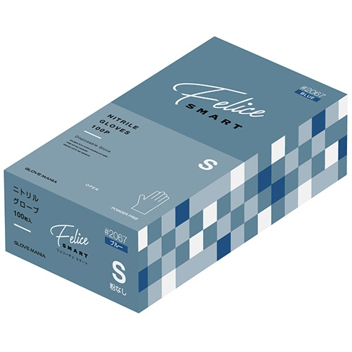 川西工業 ニトリルグローブ フェリーチェ スマート 粉なし ブルー S #2067-S 1箱(100枚)