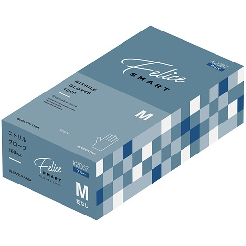 川西工業 ニトリルグローブ フェリーチェ スマート 粉なし ブルー M #2067-M 1箱(100枚)