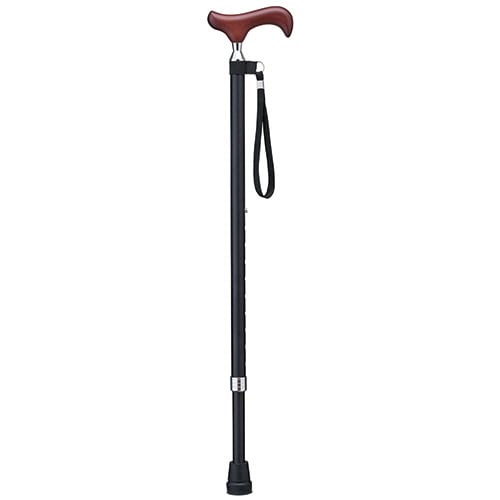 | 商品仕様 | ●種類/伸縮式 ●全長/約73~95cm(収納時:約73cm) ●調節/10段階調節(2.5cm間隔) ●色/ブラック ●重量/約340g ●材質/グリップ:木製(ブナ)、シャフト:アルミ合金、先ゴム:合成ゴム ●付属品/ストラップ ●その他仕様/●杖の上径:22mm ●杖先ゴム:太杖シリーズ用、内径/18mm、底径/38mm、色/ブラック ●適応身長:約140~184cm ●製造国:台湾 |