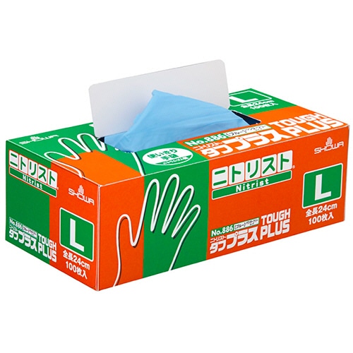 ショーワグローブ No.886 ニトリスト・タフプラス パウダーフリー L ブルー NO.886-L 1箱(100枚)