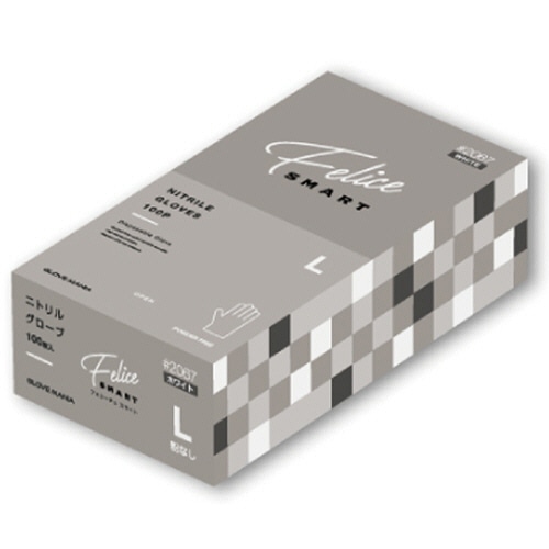 川西工業 ニトリルグローブ フェリーチェ スマート 粉なし ホワイト L #2067W-L 1箱(100枚)