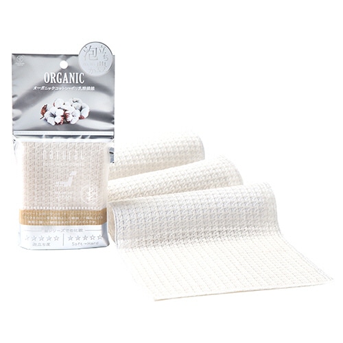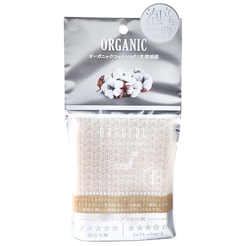 ●お肌にやさしく泡立ちの良いボディタオルです。オーガニックコットン(無農薬・有機栽培綿)を使用。