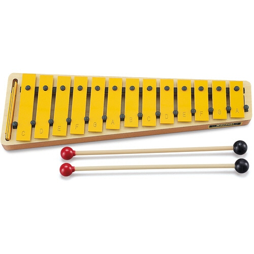 手にもって演奏ができる小さなグロッケン。音板を外して音あそびや即興演奏に。