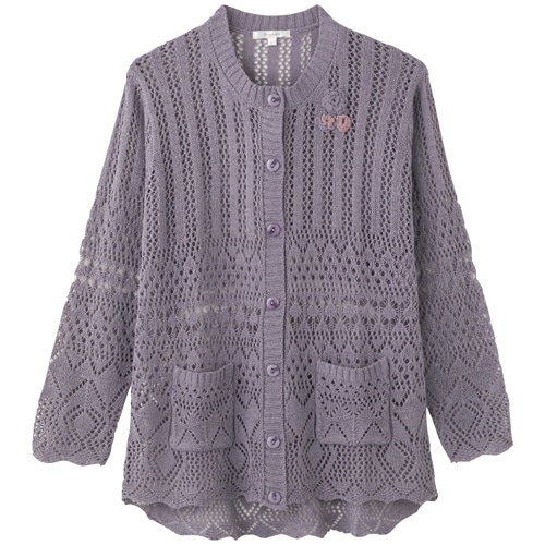 ●女性向けの丸首カーディガン。M~Lサイズ・色は青パープルです。