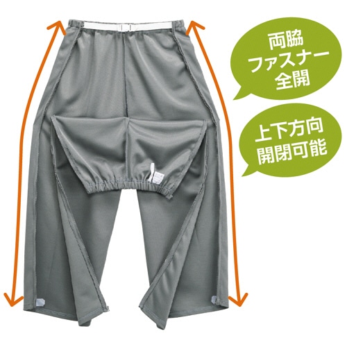 ●パンツの両サイドに、上方向にも下方向にも開くダブルファスナーがついているので着脱が楽ちんです。
