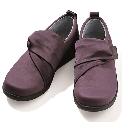 上品な足元でらくらく歩ける。外出にも履けるドレープが美しく上品なデザイン。
