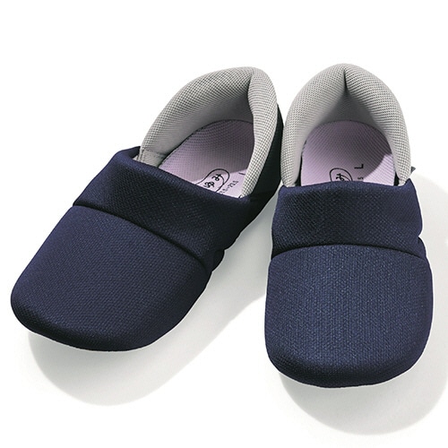 商品仕様 | ●タイプ/両足 ●対象/男女兼用 ●サイズ/M ●足サイズ/22.0~23.0cm ●足幅/3E相当 ●色/ネイビー ●使用場所/屋内 ●重量/約95g ●材質/表素材:ポリエステル100%、内素材:ポリエステル100%(メッシュ)、底材:合成皮革 ●その他仕様/●手洗い可能 ●備考/※重量は、片足・Lサイズの場合です。 ●シリーズ名/あゆみ |