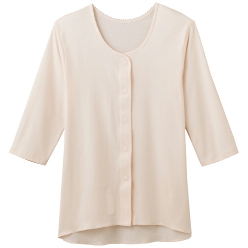 ●ワンタッチテープ止めの婦人用7分袖インナー。色はカームベージュ、LLサイズです。