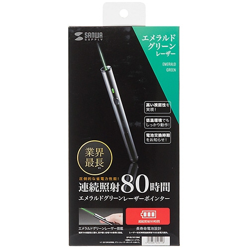 サンワサプライ グリーンレーザーポインター(電池長寿命) LP-GL1015BK 1本